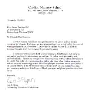 On November 8th, 2003 we held a Silent Auction at the Crofton